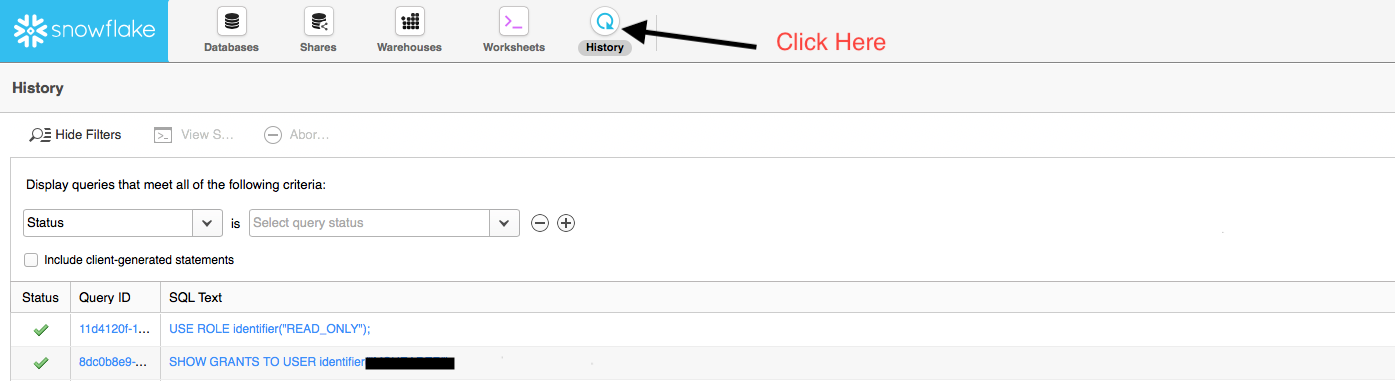 Once you have a better understanding of your warehouse load, you may need to drill down into the actual queries to get a better understanding of their total duration, their distribution over time or if they are blocked on other queries. You can view the history of the queries from the web portal by:- Logging into the web portal