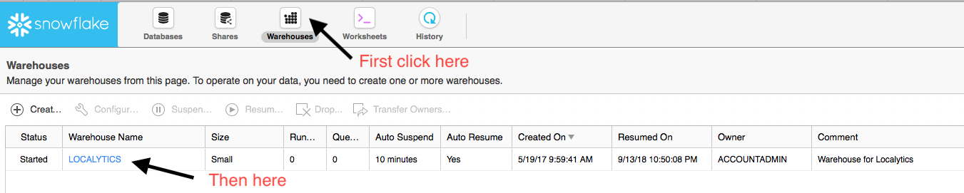 From the web portal, you can get a 15 day historical view of your warehouse activity and load. This may give you insights on how much processing you do on a daily basis. If you have a lot of small queries running often throughout the day, you may want to consider batching them up in order to optimize warehouse run time. If you have a lot of large queries running simultaneously or queries that are blocked by other queries, you may want to consider spreading them out. Insight into your warehouse load over time can help you optimize your queries so you are efficiently using your warehouse. You can view the warehouse load over time by:- Logging into the web portal